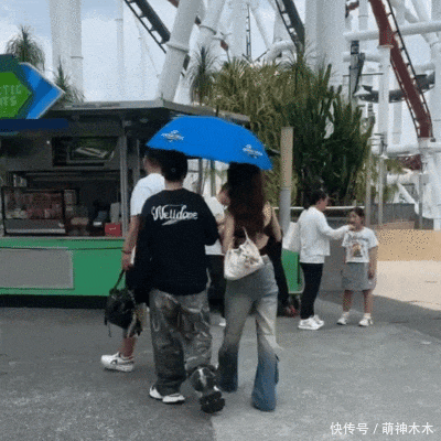 看互动,两人面对面的时候,黄晓明和美女正准备轮替接伞,黄晓明另一只手上还拿着饮料。