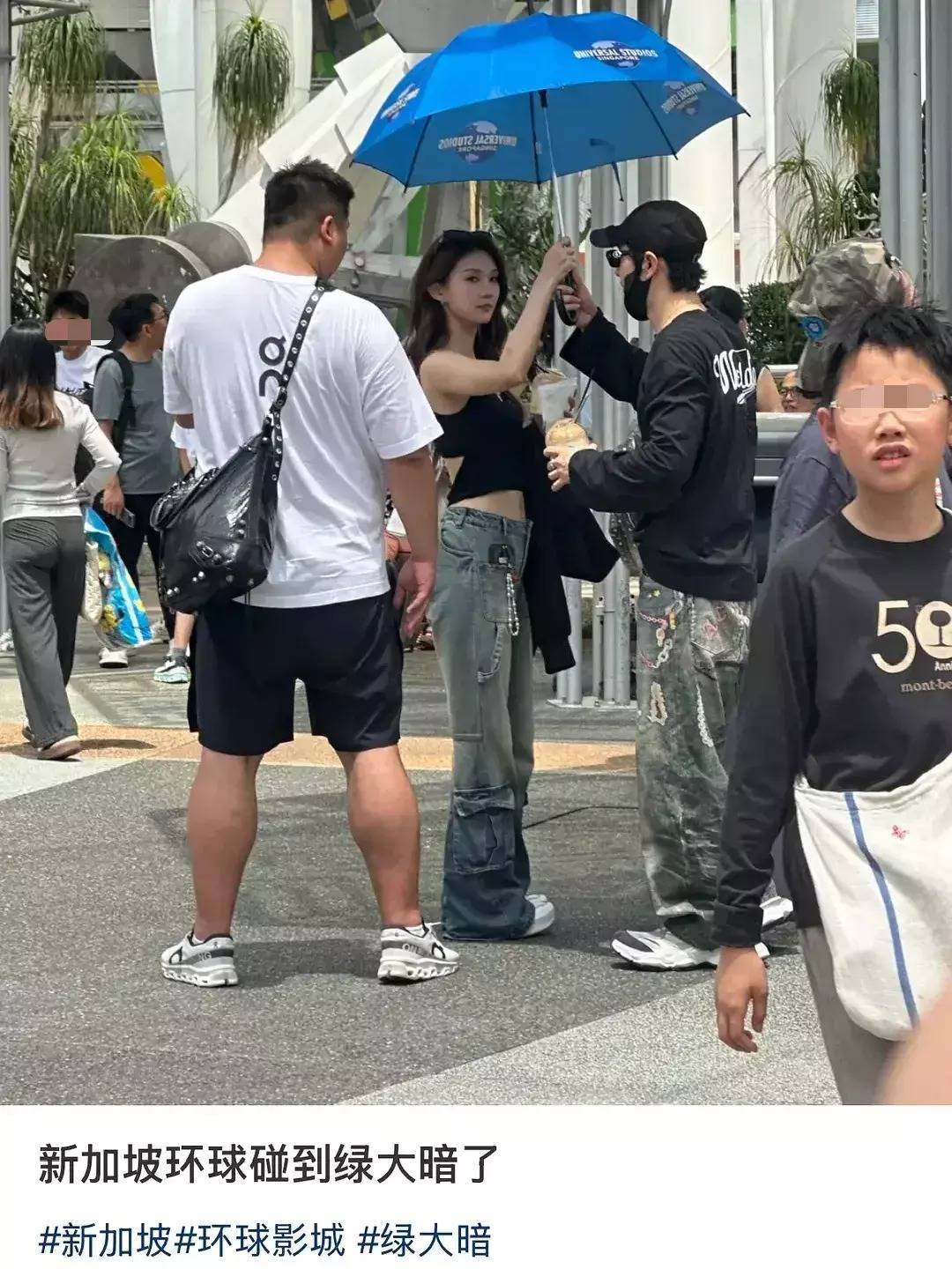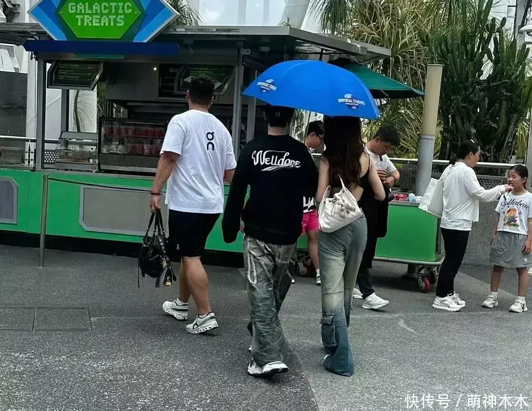 照片中,黄晓明与该美女互动亲密,还尽显绅士风采拿着伞。两人还疑似穿了情侣装,都是黑色上衣、牛仔裤、白鞋的搭配,只是款式不太一样,黄晓明是卫衣搭牛仔阔腿裤,再搭配上黑色帽子和墨镜,让48岁的他看起来年轻不少。美女是挂脖露脐背心搭牛仔阔腿裤,秀了一把火辣身材,面貌远看还是有些网红脸。